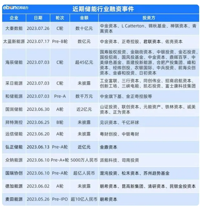 今年以來,多起儲(chǔ)能企業(yè)融資事件的金額都在億元以上。專注于雙碳賽道的投資基金及聚焦清潔能源的風(fēng)投機(jī)構(gòu),紛紛加大對(duì)儲(chǔ)能行業(yè)的投資力度。例如7月5日,海辰儲(chǔ)能完成45億元C輪融資;4月17日,融科儲(chǔ)能完成超10億元B+輪融資;3月28日,精控能源完成數(shù)億元C輪融資;3月18日,緯景儲(chǔ)能完成超6億元A輪融資等。圖片