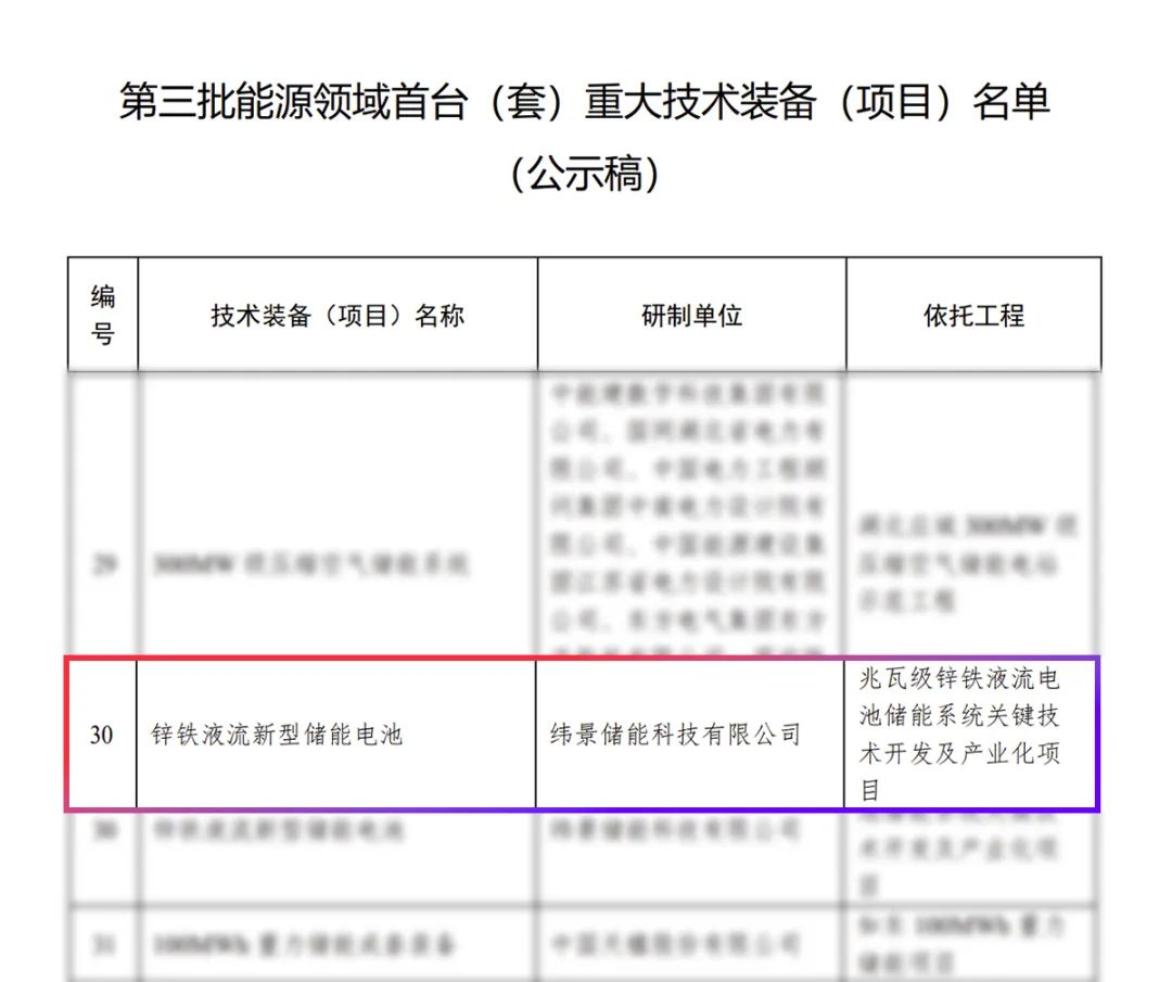 中國儲能網(wǎng)訊:近日,國家能源局發(fā)布《第三批能源領(lǐng)域首臺(套)重大技術(shù)裝備(項(xiàng)目)名單》,緯景儲能科技有限公司研發(fā)并生產(chǎn)的“鋅鐵液流新型儲能電池”作為重大技術(shù)裝備獲得行業(yè)主管部門認(rèn)可。