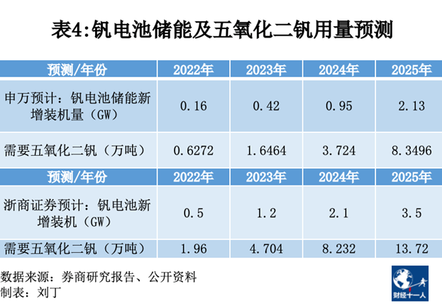 釩電池的關(guān)鍵材料是制作電解液所需的五氧化二釩,匡楨仁介紹說,目前釩電池40%-50%的成本來(lái)自電解液。根據(jù)光大證券和普能科技的數(shù)據(jù),1GW釩電池需要3.92萬(wàn)噸五氧化二釩,市場(chǎng)對(duì)五氧化二釩的需求將快速增加。