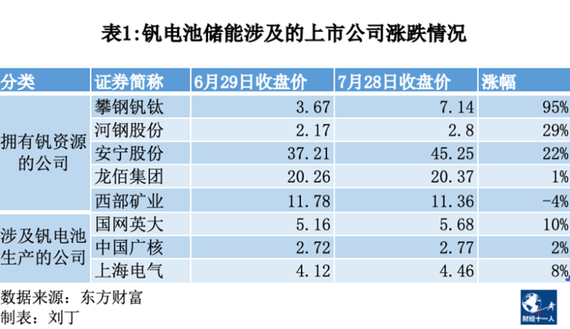 近日,釩電池概念帶動(dòng)若干股票大幅波動(dòng)。尤其是釩資源龍頭企業(yè)攀鋼集團(tuán)釩鈦資源股份有限公司(000629.SZ,下稱攀鋼釩鈦),其股價(jià)自6月29日以來(lái)接近翻倍。