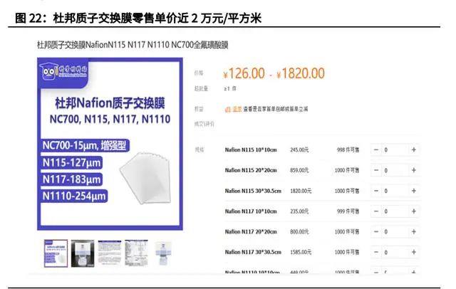 2)國產(chǎn)材料替代帶動成本下降 。在離子交換膜方面,目前全球釩電池主要使用美國杜邦公司的 Nafion 全氟 磺酸樹脂交換膜,Nafion 薄膜以磺酸基團(tuán)為交換基團(tuán),作為全釩氧化還原液流 電池的標(biāo)準(zhǔn)隔膜,其在電解液中的穩(wěn)定性高,但價(jià)格昂貴,據(jù)阿里巴巴 1688 網(wǎng), 零售單價(jià)近 20000 元/平方米。目前,國內(nèi)的科潤、東岳、中科院大化所,國外的戈?duì)柕榷荚谧灾鲃?chuàng)新開發(fā) 了更低成本的膜。隨著國產(chǎn)離子交換膜的逐步推廣,膜等產(chǎn)品仍有較大成本下降 空間,預(yù)計(jì)后續(xù)在其他電堆材料(雙極板、碳?xì)值龋┮灿谐杀緝?yōu)化空間。