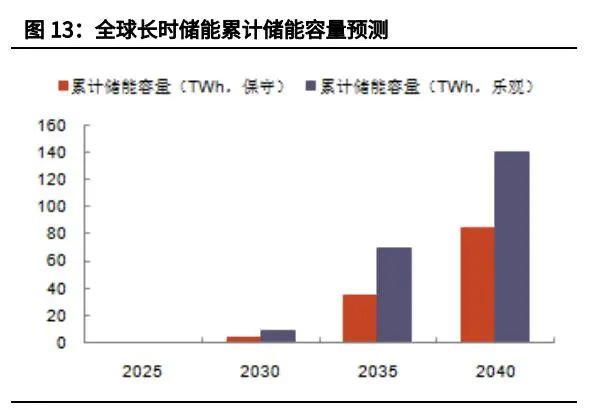 長時(shí)儲能 2040 年累計(jì)裝機(jī)量將達(dá) 1.5-2.5TW ,累計(jì)投資規(guī)模達(dá) 1.5-3 萬億 美元