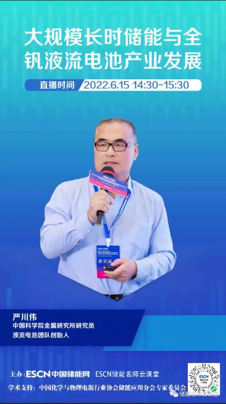 6月15日下午14:30-15:30,中國儲(chǔ)能網(wǎng)邀請(qǐng)中國科學(xué)院金屬研究所研究員,液流電池團(tuán)隊(duì)創(chuàng)始人嚴(yán)川偉做客“ESCN儲(chǔ)能名師云課堂”(在線直播),為大家分享《大規(guī)模長時(shí)儲(chǔ)能與全釩液流電池產(chǎn)業(yè)發(fā)展》主題報(bào)告。歡迎業(yè)界同仁在線學(xué)習(xí)與交流。