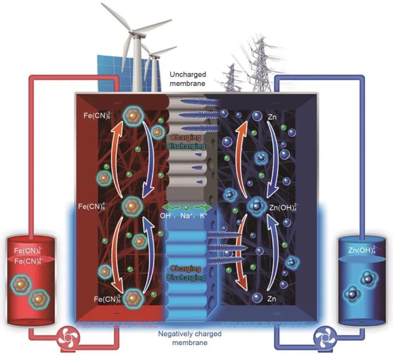 圖12 無(wú)枝晶-堿性鋅鐵液流電池示意圖