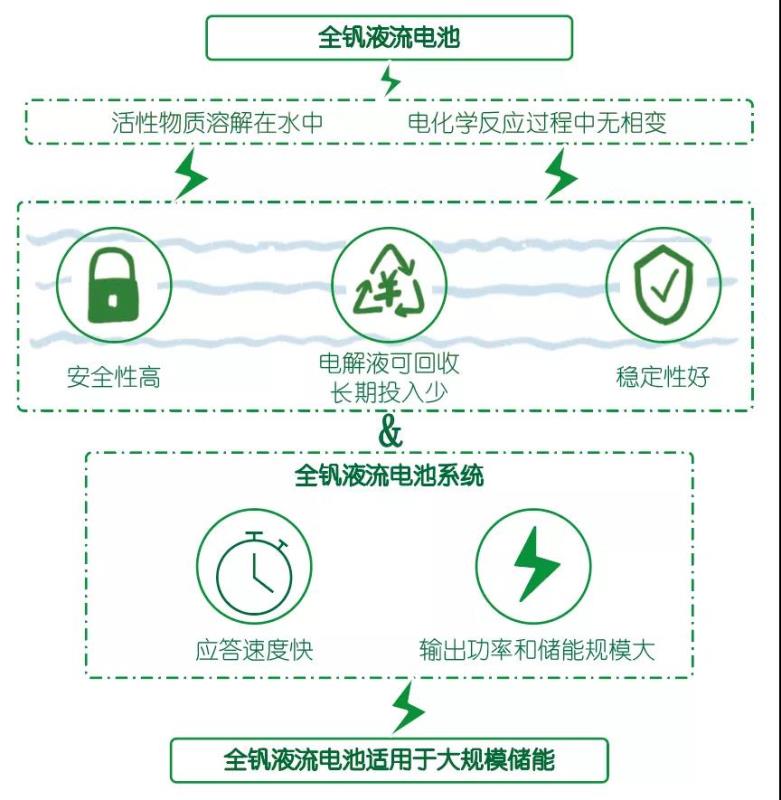 大規(guī)模儲(chǔ)能是可再生能源充分開(kāi)發(fā)利用的必要技術(shù)支撐,能夠有效解決電網(wǎng)運(yùn)行安全、電力電量平衡、可再生能源消納等方面的問(wèn)題。 全釩液流電池具有安全性好、穩(wěn)定性好、性價(jià)比高、可循環(huán)利用等優(yōu)勢(shì),在大規(guī)模儲(chǔ)能領(lǐng)域具有很好的應(yīng)用前景。