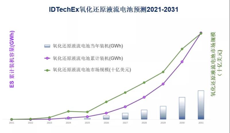 IDTechEx最新發(fā)表的一份報告指出,以目前全球采用氧化還原液流電池 (RFB) 的趨勢推測,到2031年RFB的市場規(guī)模將達到數(shù)十億美元。