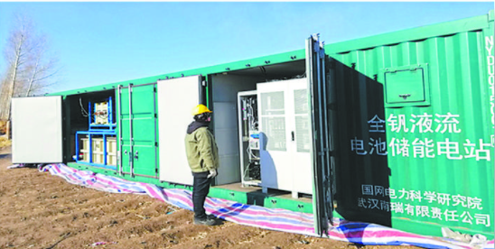 全釩液流電池還具有良好的低溫性能?!?019年1月,我們在蒙東科右中旗進行了100千瓦2小時移動式全釩液流電池儲能示范。當時臨近春節(jié),戶外有零下20攝氏度,環(huán)境條件惡劣,而我們的設備正常運轉,解決了當?shù)剞r網(wǎng)末端低電壓和供電容量不足問題,為當?shù)鼐用翊汗?jié)用電提供了保障?!睆埥茏院赖卣f。