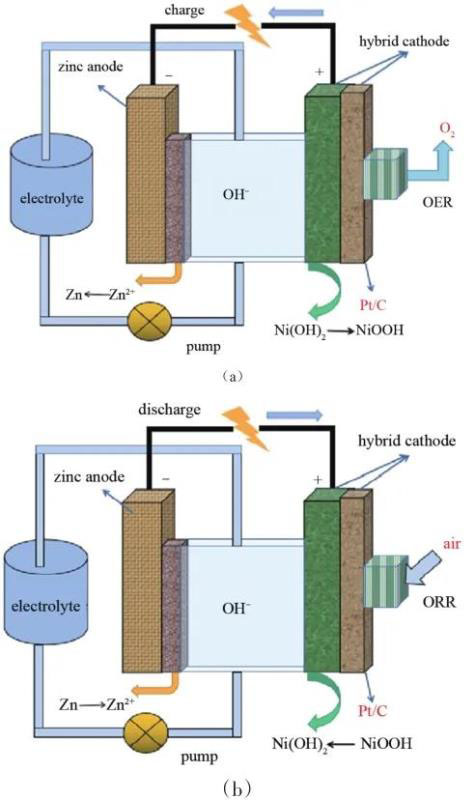 圖7 復(fù)合鋅鎳液流電池的原理圖 (a) 充電過(guò)程; (b) 放電過(guò)程