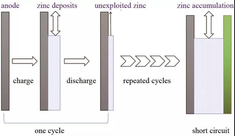然而,隨著研究的深入,人們發(fā)現(xiàn)該電池出現(xiàn)的許多問(wèn)題影響到電池的進(jìn)一步發(fā)展,比如鋅枝晶、鋅積累、極化以及氣體副反應(yīng)等。本文接下來(lái)重點(diǎn)介紹該電池存在的主要問(wèn)題及目前采取的解決方式。