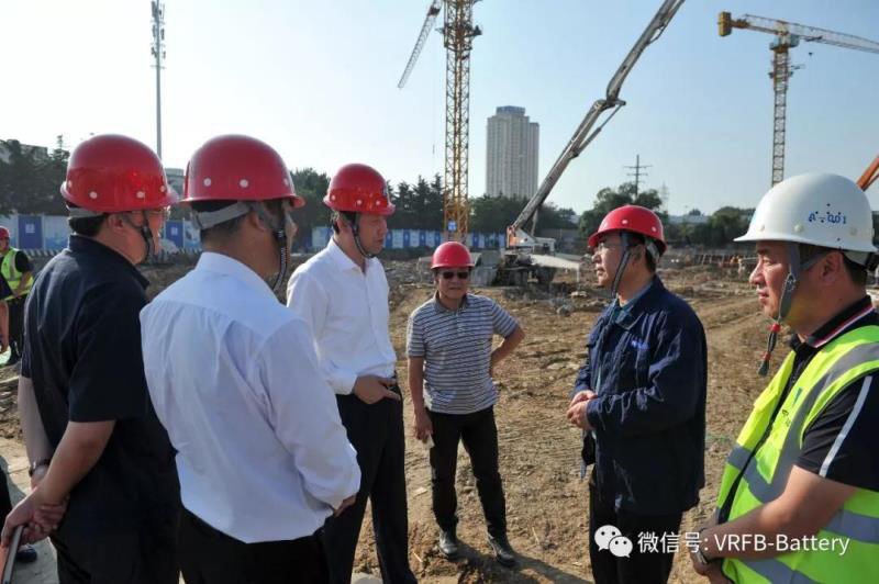 中國儲能網(wǎng)訊:9月25日下午15時30分,大連市副市長靳國衛(wèi)來到熱電集團恒流儲能有限公司,對建設(shè)中的大連液流電池儲能調(diào)峰電站國家示范項目進(jìn)行實地調(diào)研。公司黨委書記、董事長邵陽,黨委副書記、總經(jīng)理兼恒流公司董事長田魯煒,紀(jì)委書記宋宇賓,恒流公司總經(jīng)理梁立中等一同參與調(diào)研。在恒流項目施工現(xiàn)場,邵陽董事長匯報了項目目前施工進(jìn)展情況及下階段工作部署。