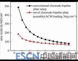圖7 傳統(tǒng)電極/雙極板和一體化電極/雙極板的面電阻對比
