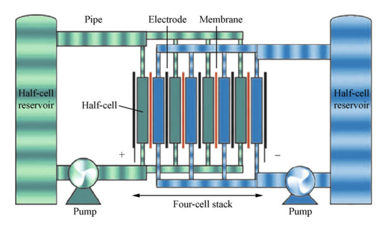 此外,液流電池能量效率高達75%~80%,啟動速度只需0.02s,且電池部件多為廉價的碳材料,無需貴金屬作催化劑。