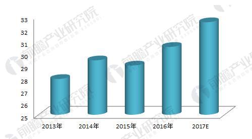 圖表3:2013-2016年全球鐵路機車用蓄電池行業(yè)市場規(guī)模變化趨勢(單位:億元)