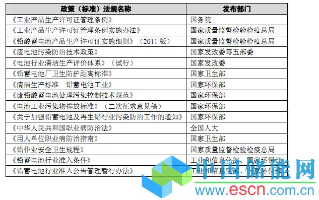 中國儲能網訊:二次電池行業(yè)所涉及的法律法規(guī)主要包括生產許可和環(huán)境保護兩個方面。其中,國家質檢總局負責實施生產許可證制度,鉛酸蓄電池生產過程中的環(huán)保不達標被列為關注重點,任何環(huán)保設施不健全,或雖有設施、但環(huán)境監(jiān)測不合格的企業(yè)均將失去生產該類產品的資格;國家環(huán)保部負責行業(yè)環(huán)?;局贫燃案黜棴h(huán)保政策、法規(guī)和標準的制定和監(jiān)管;國家衛(wèi)生部負責職業(yè)病防治政策、法規(guī)及標準的制定和監(jiān)管。2012年5月11日,國家工信部和環(huán)保部發(fā)布《鉛蓄電池行業(yè)準入條件》,自2012年7月1日起實施,現(xiàn)有鉛蓄電池及其含鉛零部件生產項目,均應于2013年12月31日前達到本準入條件的要求。相關政策法規(guī)具體如下: