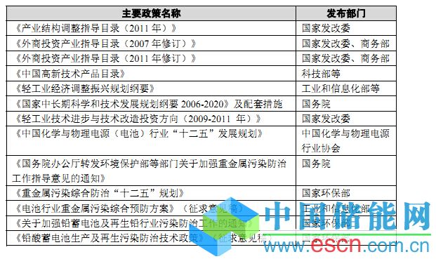 國家發(fā)改委在《輕工業(yè)技術進步與技術改造投資方向(2009-2011 年)》中將新型電池關鍵技術、材料與設備產業(yè)化列為重點行業(yè)技術創(chuàng)新與產業(yè)化,并明確指出其包括新型結構鉛酸蓄電池、動力型鋰離子電池和電極材料、隔膜、電解質等關鍵材料制備技術;另外在推進行業(yè)節(jié)能減排部分著重列示了電池產業(yè),主要節(jié)能減排方向包括鋰離子電池替代電動工具用鎳鎘電池以及廢舊鉛酸蓄電池規(guī)?;厥赵倮?。