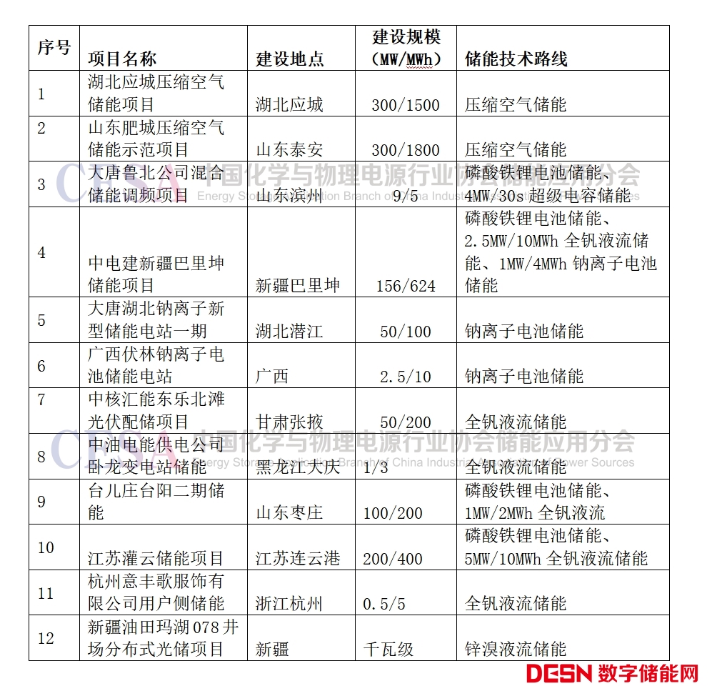 今年來,新型儲能的多元化技術(shù)路線全面開花,除磷酸鐵鋰電池儲能外,包括壓縮空氣儲能、全釩液流儲能、鈉離子電池儲能等多技術(shù)路線儲能項目并網(wǎng)投運,典型項目如下表所示。