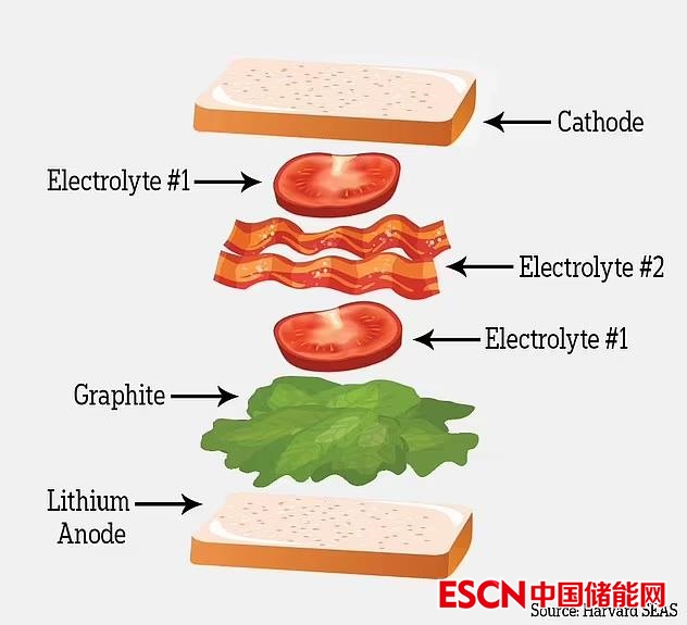 像經(jīng)典英式BLT三明治結(jié)構(gòu)一樣的鋰金屬電池。