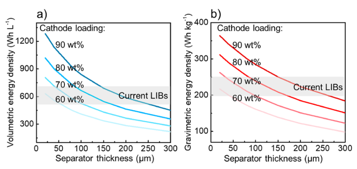 除界面穩(wěn)定性問題,ASSBs的大規(guī)模生產還面臨許多實際挑戰(zhàn),要達到較高的能量密度,需增加陰極載量,改善粒子間接觸,降低電解質厚度。
