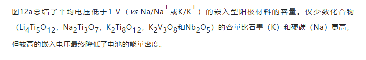 總之,聚陰離子化合物在NIB和KIB中具有巨大的應用潛力。實驗研究了過渡金屬和陰離子基團的不同組合,以確定其Na+/K+的嵌入電壓和容量,如圖9所示。