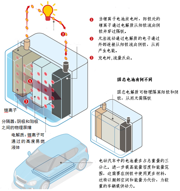 固態(tài)電池,即采用固態(tài)電解質(zhì)的鋰離子電池,被稱為未來鋰電池的發(fā)展方向。固態(tài)電池?fù)碛胁豢扇〈膬?yōu)勢(shì),其一是固態(tài)電解質(zhì)具有不易燃、無腐蝕、無揮發(fā)等特性,因此無論在性能還是安全性方面都優(yōu)于液態(tài)電池;其二是能量密度更高,理論上固態(tài)電池的能量密度可以達(dá)到400~500Wh/kg,進(jìn)而提升電動(dòng)車輛的續(xù)航力;其三是用固態(tài)電解質(zhì)取代正負(fù)極之間的隔膜電解液,使得電池更薄、體積更小,因此全固態(tài)電池技術(shù)也是電池小型化、薄膜化的必經(jīng)之路。