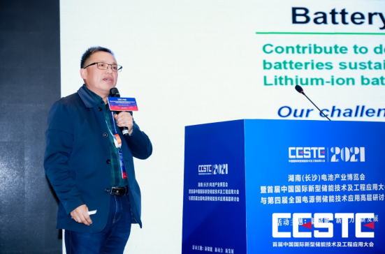 隨著電動汽車和儲能產業(yè)的飛速發(fā)展,給儲能電池產業(yè)的發(fā)展帶來了前所未有的機遇,特別是習總書記向全世界提出了我們的“碳達峰”、“碳中和”目標,我們在座的儲能裝備制造單位,以及儲能領域的科研人員,應該思考隨著國家“雙碳”指標要求的提出,要實現(xiàn)“碳達峰”、“碳中和”,我們該怎么辦?當然,首先我們儲能產業(yè)及其相關產業(yè)領域肯定會隨著“雙碳”目標的實現(xiàn)贏來一個大顯身手的好機會。如電動汽車的產業(yè)從去年到今年發(fā)展速度異常迅猛,還有儲能產業(yè),剛才長沙理工的賈老師已經描繪了儲能產業(yè)的前景。如此大的市場前景,我們科研人員更應該從如何提升儲能電池的性能及一些關鍵技術,以及如何取得突破等方面進行深入思考,我們的企業(yè)家也應該考慮如何實現(xiàn)新的電池技術突破,如何提高電池高能量密度,如何實現(xiàn)更低的成本,另外就是如何提高電池的安全性等方面考慮布局我們的產業(yè)。當然還有一些原材料的可持續(xù)供應鏈的問題,剛才有專家說的鋰資源的循環(huán)利用問題,以及鋰電池材料的修復再利用的問題,這些都是大家所關注的,因為原材料直接決定了電池的成本。