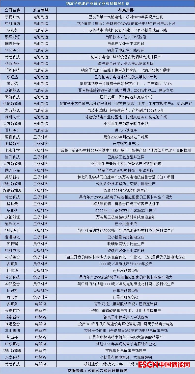 鈉離子電池產(chǎn)業(yè)鏈企業(yè)布局情況匯總