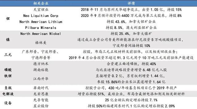 從供給側(cè)看,寧德時代雖為電池制造商,但近年來其業(yè)務(wù)布局早已不止電池制造那么簡單。據(jù)統(tǒng)計,早在2020年,寧德時代的觸角早已伸向囊括原材料礦產(chǎn)、電池材料、電池應(yīng)用、終端產(chǎn)品運營的全產(chǎn)業(yè)鏈業(yè)務(wù),布局方式包括投資參股、收購、成立子公司等。