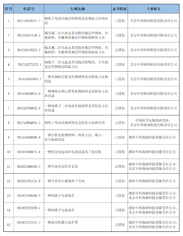專利技術積累雄厚,全面構建核心競爭力。中科海鈉擁有多項鈉離子電池核心專利,是國內(nèi)外少有的擁有鈉離子電池核心專利與技術的電池企業(yè)之一。在正極材料方面,中科海鈉設計和制備出的低成本、環(huán)境友好的Na-Cu-Fe-Mn層狀氧化物正極材料已經(jīng)在中國、日本、美國、歐盟獲得專利授權;而在負極材料方面,其所掌握的使用低成本的煤作為原材料制備負極材料的技術同樣獲得了專利授權?;谝陨蠈@夹g,中科海鈉構建了較為全面的核心競爭力,電池產(chǎn)品性能較為優(yōu)越。
