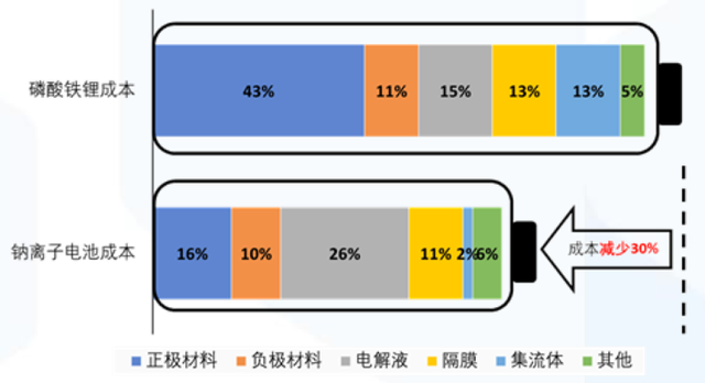 一方面,鈉離子電池成本低廉。據(jù)中科海鈉測(cè)算,鈉離子電池材料比磷酸鐵鋰電池低約1/3。