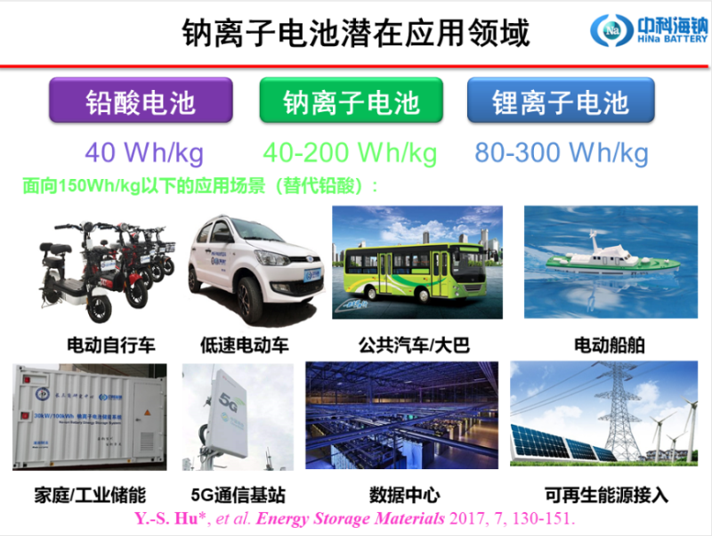 除了關(guān)鍵材料的研發(fā),相關(guān)企業(yè)不斷有序推進(jìn)關(guān)鍵材料放大制備和生產(chǎn)、電芯設(shè)計(jì)和研制、模塊化集成與管理,推動(dòng)鈉離子電池的商業(yè)化進(jìn)程。其中,國(guó)內(nèi)專注于鈉離子電池研發(fā)的企業(yè)中科海鈉公布的數(shù)據(jù)顯示,鈉離子電芯能量密度已接近150 Wh/kg, 循環(huán)壽命達(dá)4000次以上,高低溫性能優(yōu)異、安全性高、具備快充能力;并于2019年3月發(fā)布了世界首座30 kW/100 kWh鈉離子電池儲(chǔ)能電站,標(biāo)志我國(guó)在鈉離子電池的應(yīng)用示范方面走在了世界前列。目前,我國(guó)在鈉離子電池產(chǎn)品研發(fā)制造、標(biāo)準(zhǔn)制定以及市場(chǎng)推廣應(yīng)用等方面的工作正在全面展開,為鈉離子電池在中國(guó)的商業(yè)化奠定堅(jiān)實(shí)的基礎(chǔ)。