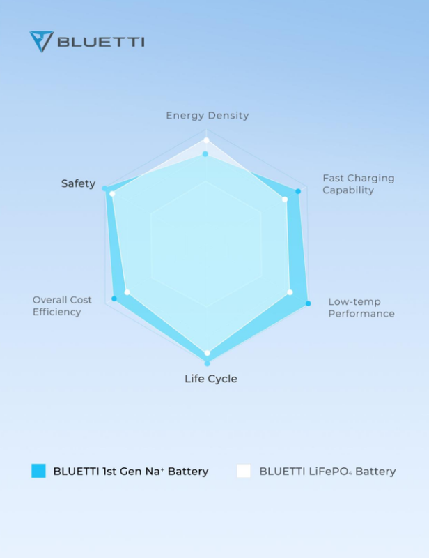 NA300儲(chǔ)能搭載了BULETTI與合作伙伴聯(lián)合開(kāi)發(fā)的高性能 鈉離子電池,安全性遠(yuǎn)超鋰離子電池,在極限情況下保證不起火、不爆炸;并具有比鋰離子電池更耐用,更環(huán)保的特性。NA300設(shè)計(jì)使用壽命12年,安裝有BLUETTI自主設(shè)計(jì)的鈉離子BMS,可將鈉離子電池的使用壽命提升至10000次,并可實(shí)現(xiàn)零下25℃低溫環(huán)境的充、放電使用。