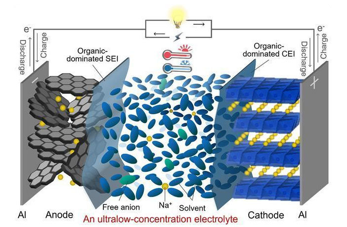 該研究結(jié)果近日以“Ultralow-Concentration Electrolyte for Na-Ion Batteries”為題發(fā)表在國際能源領(lǐng)域頂級期刊《美國化學會能源快報》(ACS Energy Letters)上。