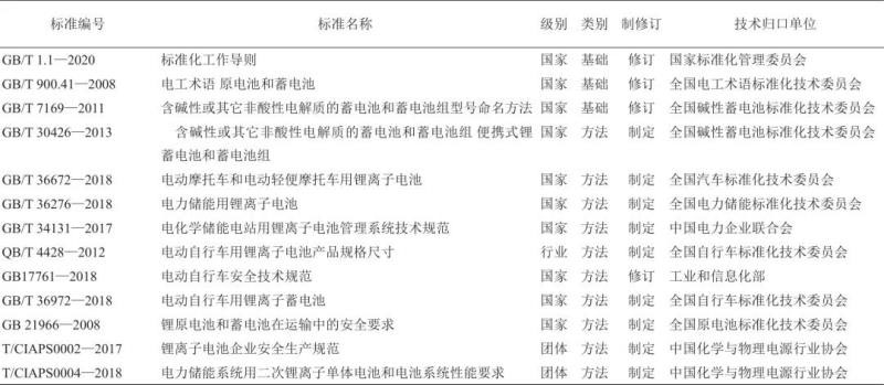 表2 可供鈉離子電池參考的相關(guān)標(biāo)準(zhǔn)