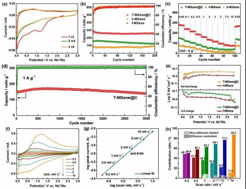 5. T-MXene@C的儲鈉性能及動力學(xué)機(jī)理