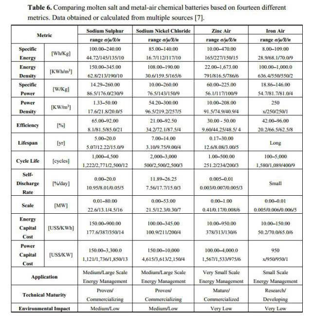 筆者從學(xué)術(shù)文獻(xiàn)中摘到了關(guān)于鈉鎳電池的性能表,可以看到作為儲能技術(shù)其關(guān)鍵的衡量指標(biāo)都已經(jīng)在這個表中有了體現(xiàn)。