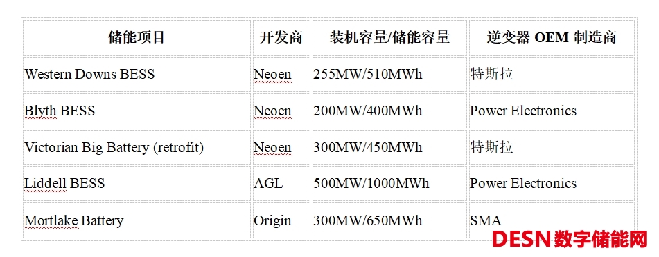 如下圖所示,這些逆變器將由三家逆變器制造商提供給這五個儲能項目:特斯拉公司、Power Electronics公司和SMA公司,其中SMA公司是Mortlake儲能項目的供應商。