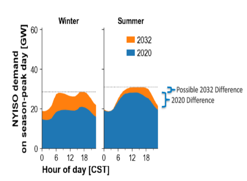 圖14.電氣化對NYISO公司需求高峰期間影響的例子