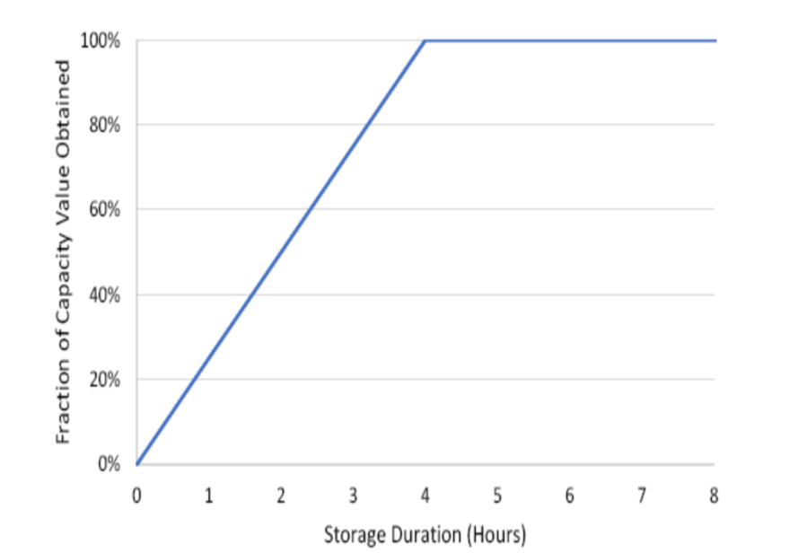 圖2 對于4小時容量規(guī)則的地區(qū)來說,持續(xù)時間超過4小時的儲能系統(tǒng)提供的容量服務(wù)并沒有額外經(jīng)濟(jì)回報。