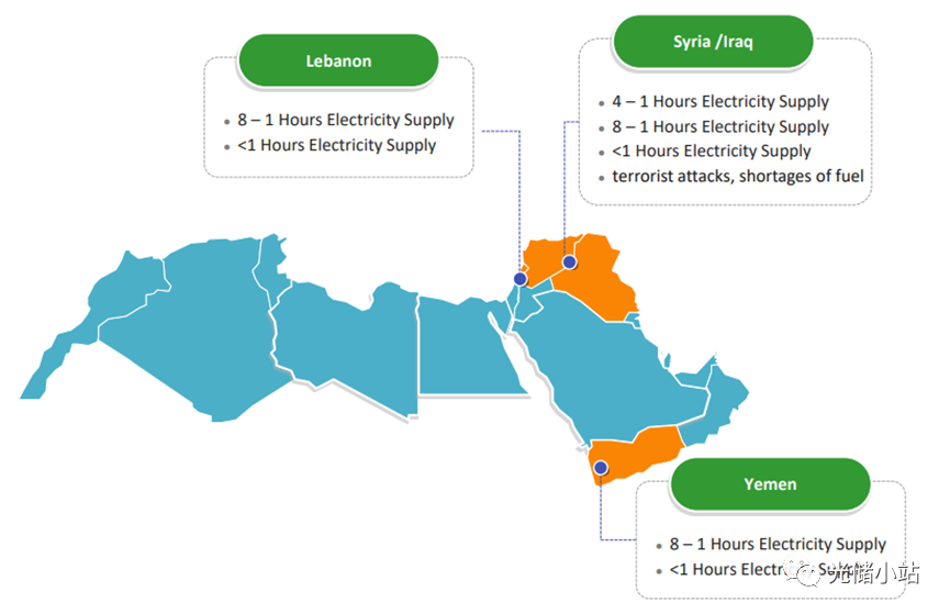 由于地緣政治風(fēng)險(xiǎn)等因素,用戶側(cè)儲(chǔ)能需求集中體現(xiàn)在黎巴嫩,也門,敘利亞和伊拉克等地區(qū),這些需求集中體現(xiàn)在對(duì)于小于1h的備電需求,以及1h-4h或者1h-8h的直接電力供給需求。