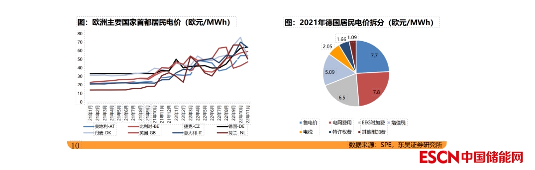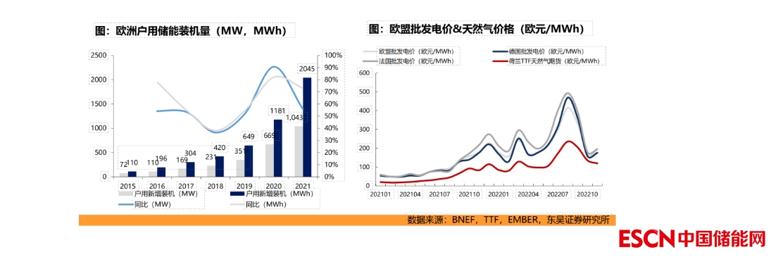中國(guó)儲(chǔ)能網(wǎng)訊:歐洲能源危機(jī)下,歐洲戶用光儲(chǔ)高經(jīng)濟(jì)性得到市場(chǎng)的認(rèn)可,光儲(chǔ)需求開(kāi)啟爆發(fā)式增長(zhǎng)。居民電價(jià)合約機(jī)制,2023年新簽合約電價(jià)大幅上漲,電價(jià)平均為40歐元/MWh以上,同比提高80-120%,我們預(yù)計(jì)未來(lái)1-2年持續(xù)保持高價(jià),光儲(chǔ)剛性需求明確。