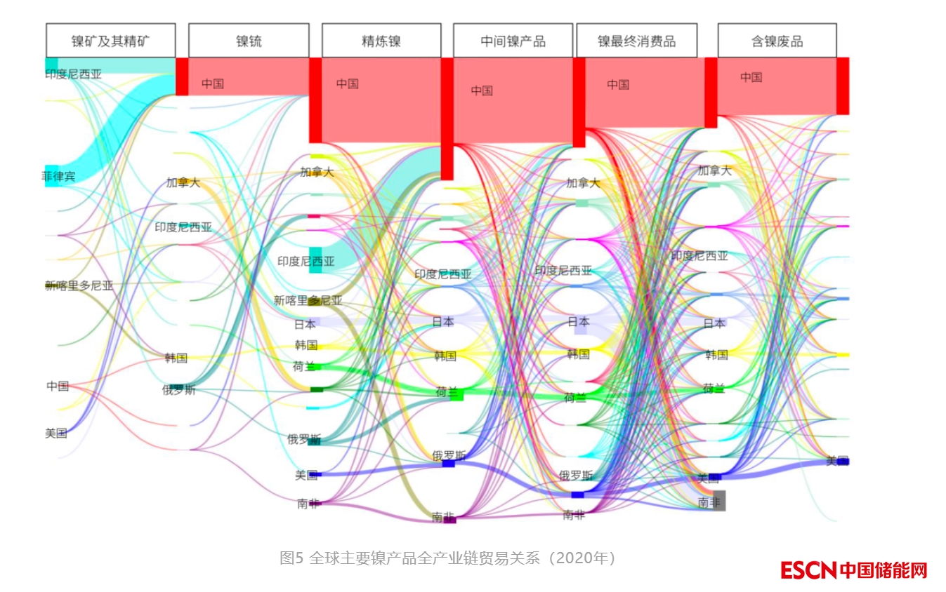 3. 全球鎳礦資源供應(yīng)主要集中在印度尼西亞、菲律賓、加拿大和俄羅斯。表面看來中國似乎具有全球最大、最完整的鎳產(chǎn)業(yè)鏈,但其上游鎳礦和鎳鐵供應(yīng)高度依賴印度尼西亞和菲律賓,凸顯了其上游資源供應(yīng)鏈高度集中的脆弱性(圖?5)。