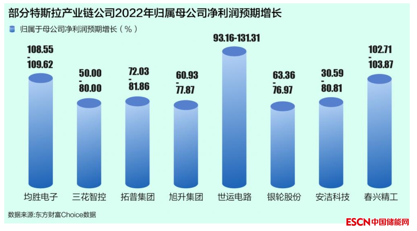 縱然經歷了疫情、斷電、超級工廠停產等意外事件的滋擾,身處A股市場的特斯拉供應商們在2022年依然收獲了極為快速的增長。