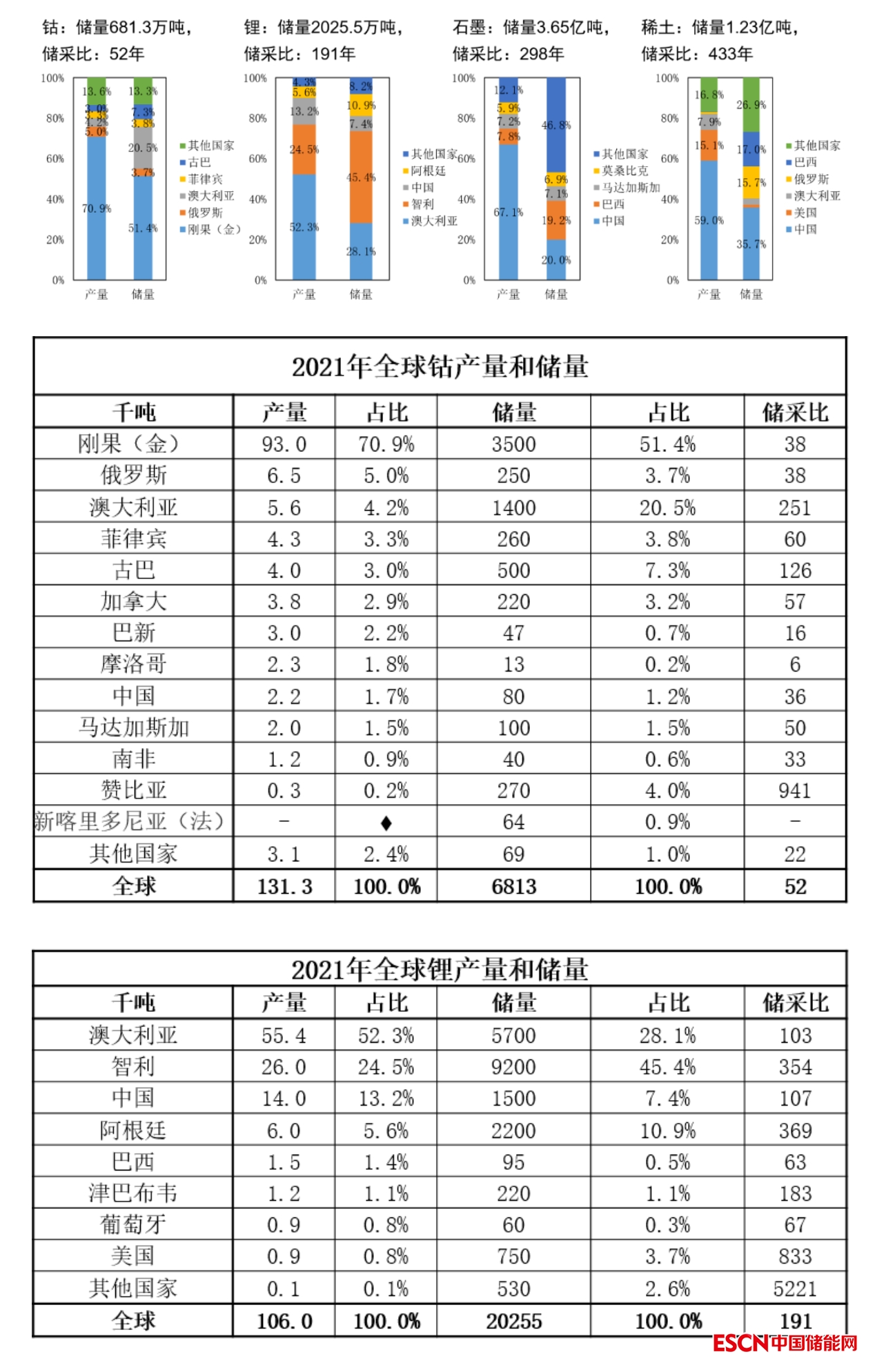 2021年全球部分礦產(chǎn)儲(chǔ)量和產(chǎn)量