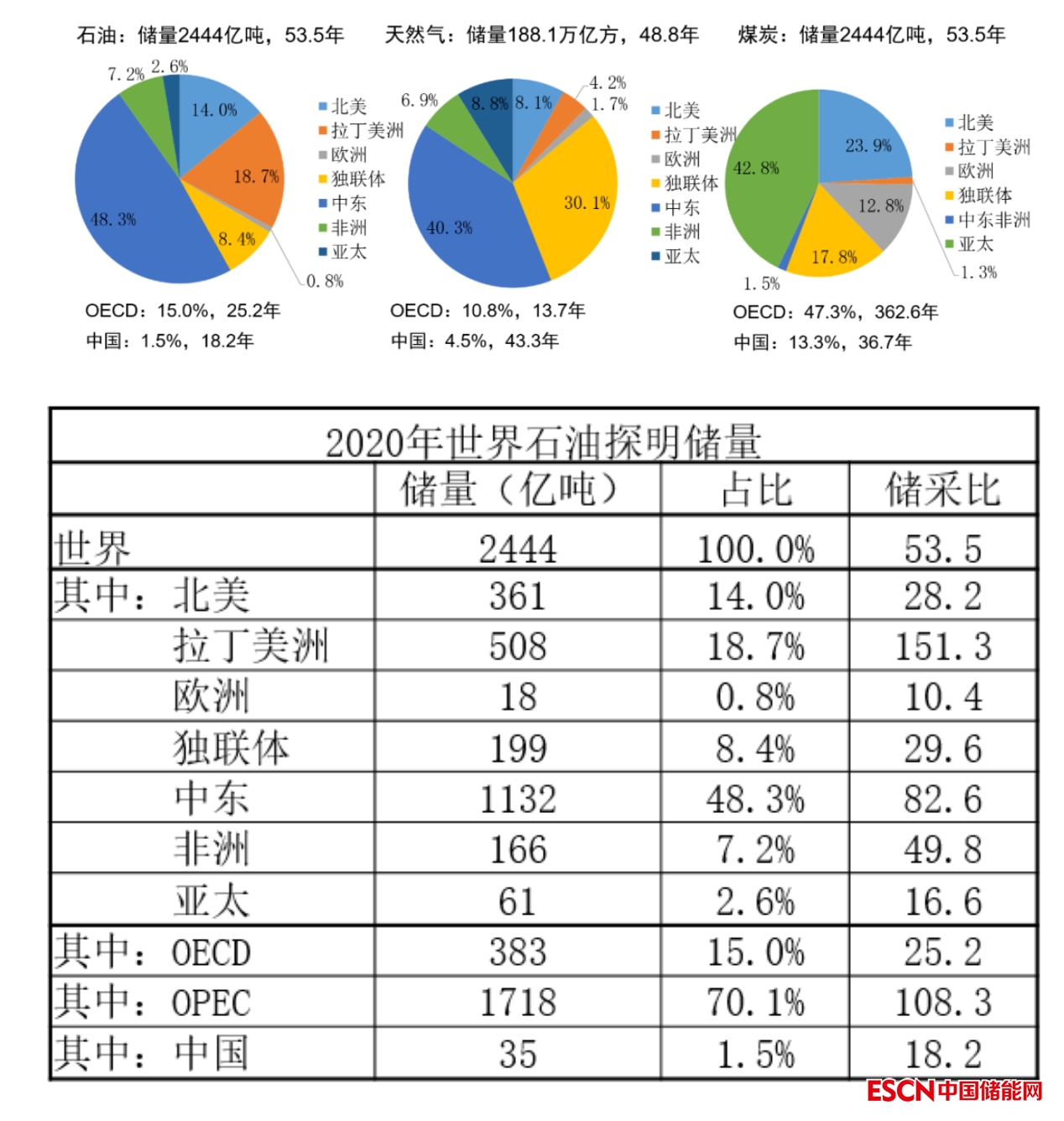 化石能源資源主要分布在發(fā)展中國(guó)家。OECD國(guó)家石油、天然氣、煤炭?jī)?chǔ)量分別占全球的15%、10.8%、47.3%。