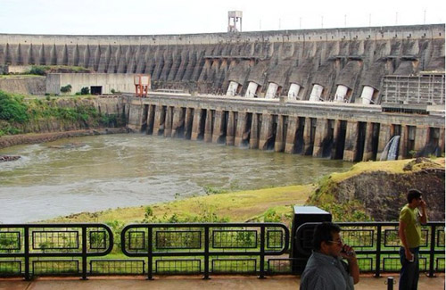 伊泰普水電站總裝機容量1400萬千瓦,年發(fā)電量900億度,其中2008年發(fā)電948.6億度。伊泰普水電站第一臺發(fā)電機組于1984投入運轉(zhuǎn),1991年全部工程完工,壩址控制流域面積82萬平方公里,大壩全長7744米,攔腰截斷巴拉那河,形成面積1350平方千米、庫容290億立方米的人工湖。多年平均流量8500立方米/秒。壩址處常水位時河寬約400米,枯水河槽寬250米,基巖主要為堅硬完整玄武巖。壩內(nèi)蓄滿水后,形成了面積達1350平方公里、深度為250米、總蓄水量為290億立方米的伊泰普人工湖。湖的大半在巴西,小半在巴拉圭境內(nèi)。伊泰普水電站建成后成為當?shù)刂穆糜尉包c,目前每年接待游客超過80萬人次。伊泰普(Itaip)在印地安語中意為“會唱歌的石頭”