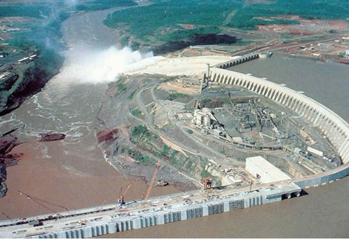 中國儲能網(wǎng)訊:伊泰普水電站位于巴西與巴拉圭之間的界河——巴拉那河(世界第五大河,年徑流量7250億立方米)上,伊瓜蘇市北12公里處,是當今世界裝機容量第二大,發(fā)電量最大的水電站。(裝機容量最大的是長江三峽水電站,總裝機容量將達到2250萬千瓦,年發(fā)電量為900億度左右。)由巴西與巴拉圭共建,發(fā)電機組和發(fā)電量由兩國均分。
