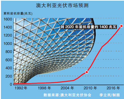 然而,有人認為,常被忽略的澳大利亞光伏市場可能會繼續(xù)被國外投資者忽略,因為他們對一個已經(jīng)日趨成熟、缺乏挑戰(zhàn)的市場沒有多大興趣。但事實或許并非如此,據(jù)《悉尼時報》12月1日報道,由中國太陽能企業(yè)尚德電力制造的384千瓦太陽能光伏屋頂系統(tǒng),11月底在澳大利亞悉尼歌劇院成功并網(wǎng)發(fā)電。這套價值200萬澳元的太陽能發(fā)電設(shè)備,由1906塊“冥王星”太陽能電池板組成,是目前澳大利亞裝機容量最大的太陽能光伏屋頂系統(tǒng)。投入使用后,預(yù)計每年發(fā)電40萬千瓦時,25年產(chǎn)品壽命期累計發(fā)電將達1000萬千瓦時,連同其他節(jié)能改造措施,預(yù)計能滿足悉尼歌劇院70%的用電需求。顯然,未來幾年,澳大利亞光伏產(chǎn)業(yè)必將迎來新一輪的增長,澳大利亞將成為全球光伏市場重要的增長點。