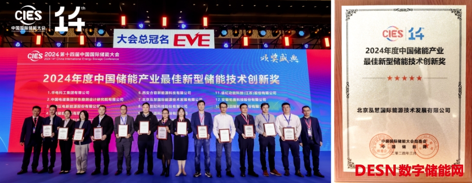 中國(guó)儲(chǔ)能網(wǎng)訊:3月10日,2024CIES第十四屆中國(guó)國(guó)際儲(chǔ)能大會(huì)暨展覽會(huì)在杭州盛大召開,北京泓慧國(guó)際能源技術(shù)發(fā)展有限公司(以下簡(jiǎn)稱“泓慧能源”)攜核心產(chǎn)品應(yīng)邀參加,并在大會(huì)頒獎(jiǎng)典禮上榮獲“2024年度中國(guó)儲(chǔ)能產(chǎn)業(yè)最佳新型儲(chǔ)能技術(shù)創(chuàng)新獎(jiǎng)”和“2024年度中國(guó)儲(chǔ)能產(chǎn)業(yè)最佳創(chuàng)新力企業(yè)獎(jiǎng)”兩項(xiàng)殊榮。