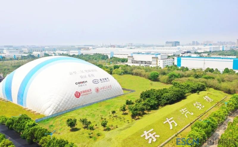 中國儲能網(wǎng)訊:8月的驕陽下,東方電氣集團(tuán)東方汽輪機(jī)有限公司(以下簡稱“東方汽輪機(jī)”)廠區(qū)東南一隅,矗立著一座藍(lán)白相間的“小山”,“山”腳下,一排排廠房、管道、罐體整齊排列,共同組成了占地面積約為兩個半足球場大小的“充電寶”——全球首個二氧化碳+飛輪儲能示范項目。