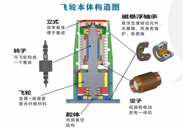 飛輪儲(chǔ)能屬于物理儲(chǔ)能,采用磁懸浮技術(shù),飛輪轉(zhuǎn)子在真空室內(nèi),無(wú)風(fēng)阻環(huán)境下運(yùn)行。飛輪儲(chǔ)能裝置安裝于軌道交通牽引變電所內(nèi),當(dāng)列車(chē)進(jìn)站制動(dòng)時(shí),飛輪吸收能量,將電能轉(zhuǎn)換為動(dòng)能,轉(zhuǎn)速高達(dá)每分鐘20000轉(zhuǎn);當(dāng)列車(chē)出站加速時(shí),飛輪釋放能量,將動(dòng)能轉(zhuǎn)化為電能,釋放能量供列車(chē)使用,具有極佳的節(jié)能和穩(wěn)壓效果。